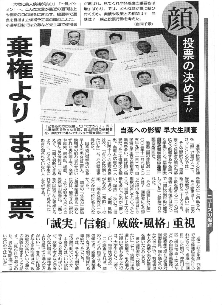 松山第二小学校では少年野球に、北中学校ではソフトテニスに打ち込む。同級生には毎回選挙を手伝って貰っており、何より心強い存在。川越高校では吹奏楽部に入部し、トランペットを吹く。