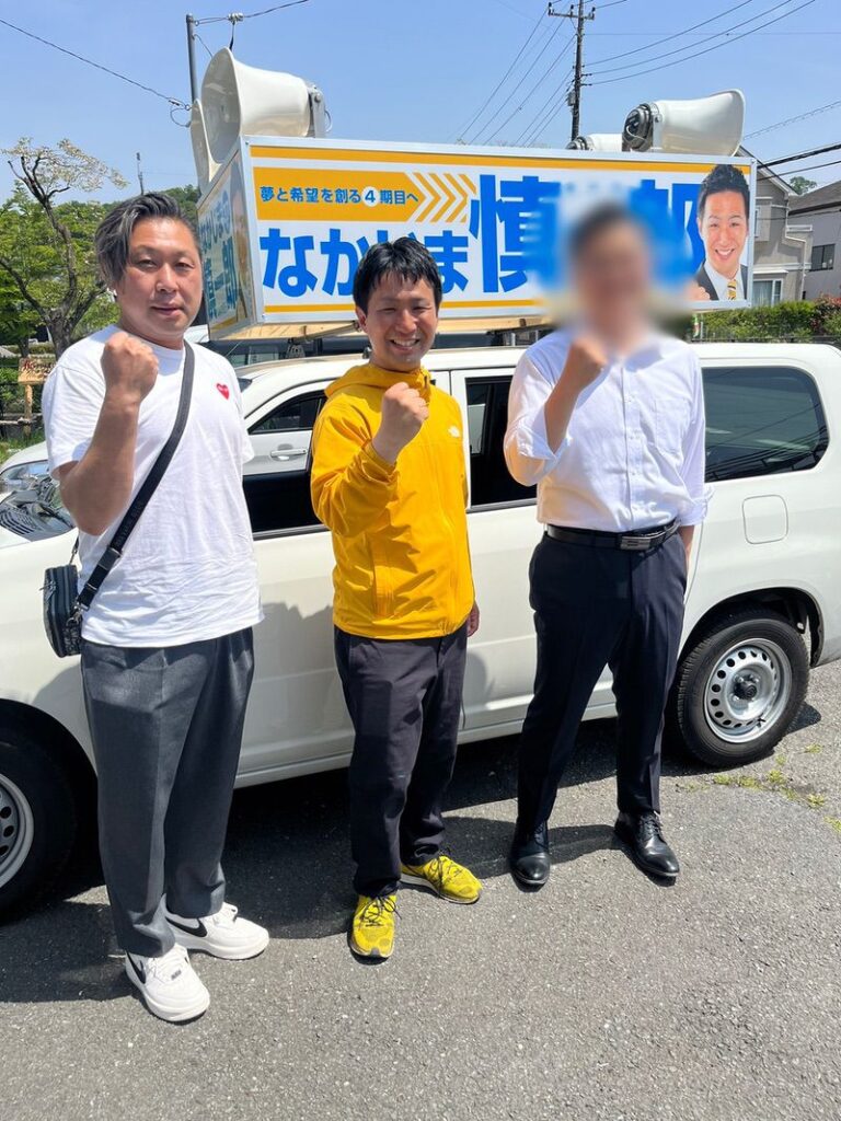 比企JCの先輩にもポスター貼りから運転手までお手伝いいただいています。