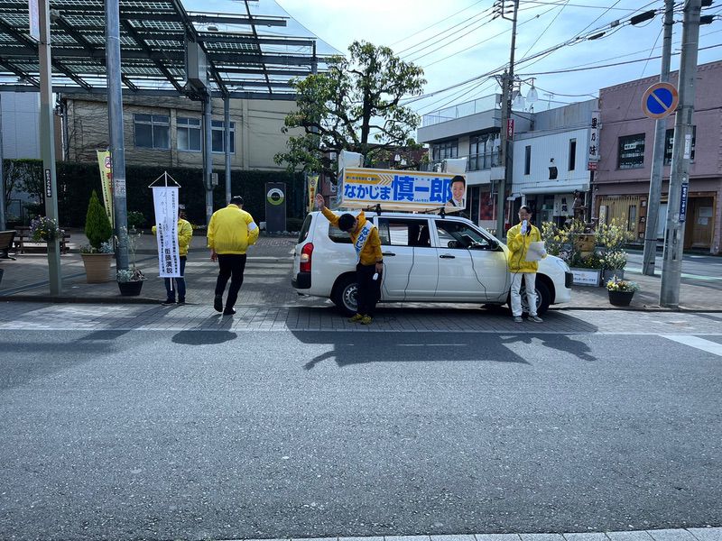 ぼたん通り商店街のピオパークでの街頭演説を皮切りに、地元の平野地区各地で街頭演説を行いました。