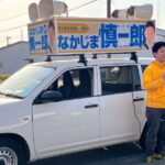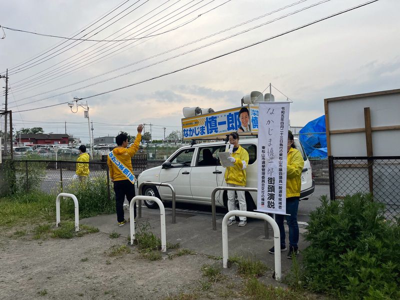 アイキャッチ画像に設定した殿山町での街頭演説では、多くの子どもたちに向けて街頭演説をしました。